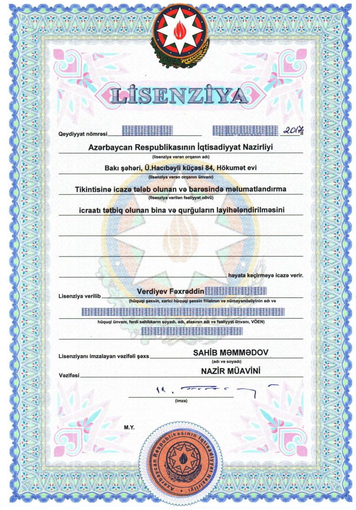 License issuing authority: The Ministry of Economy of the Azerbaijan Republic