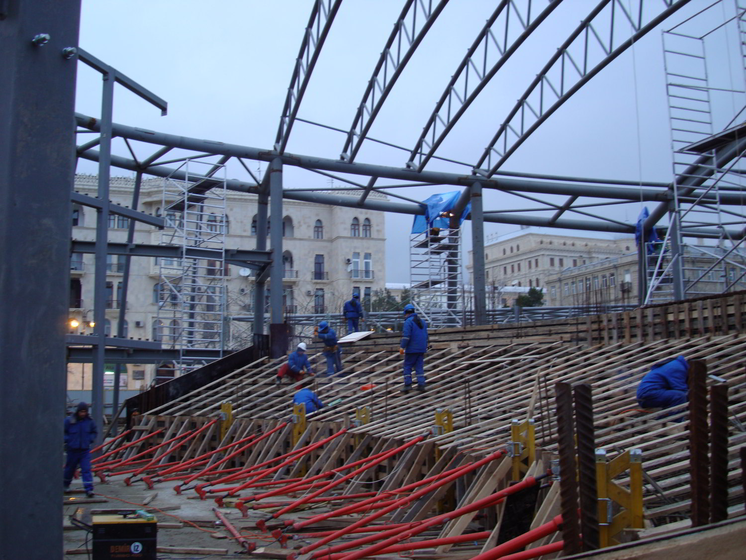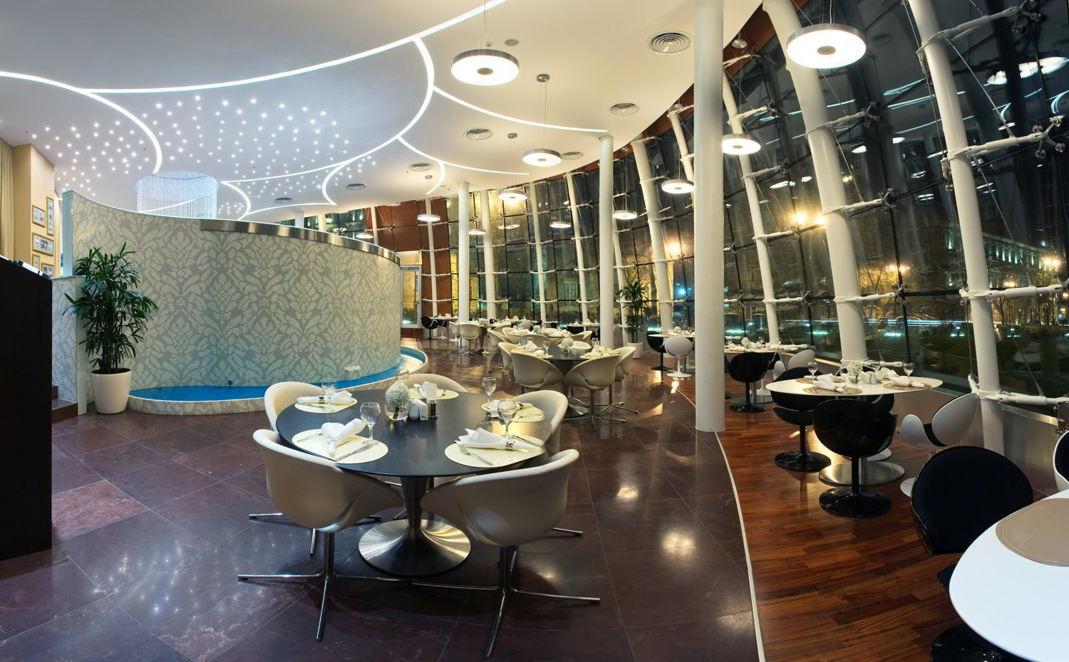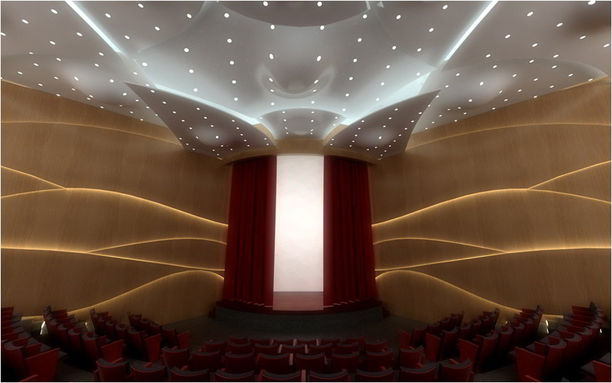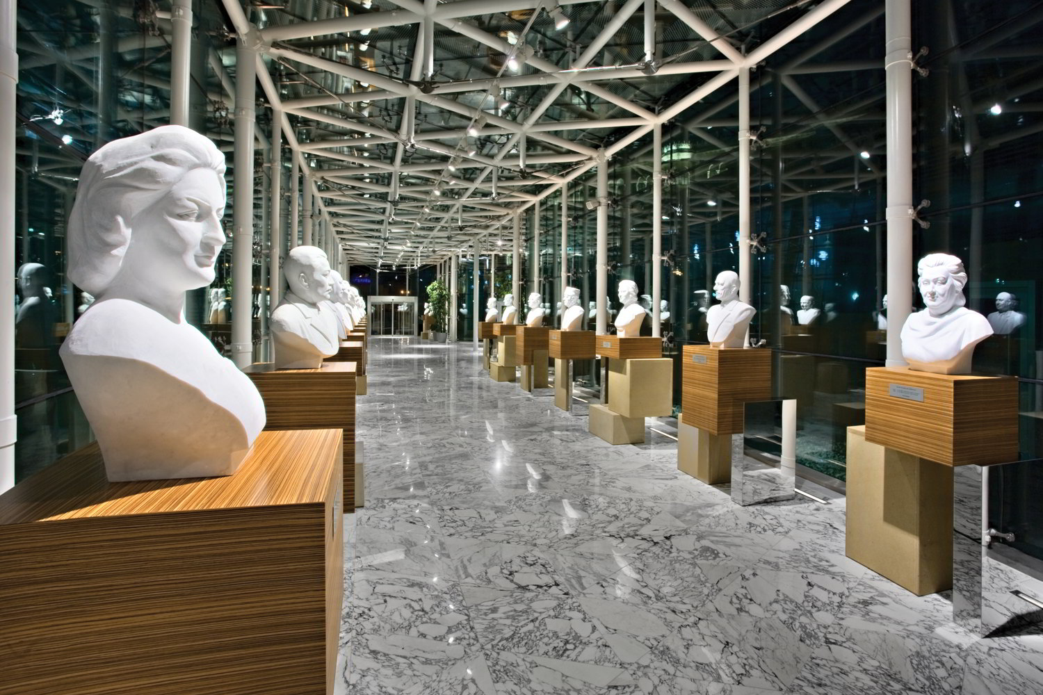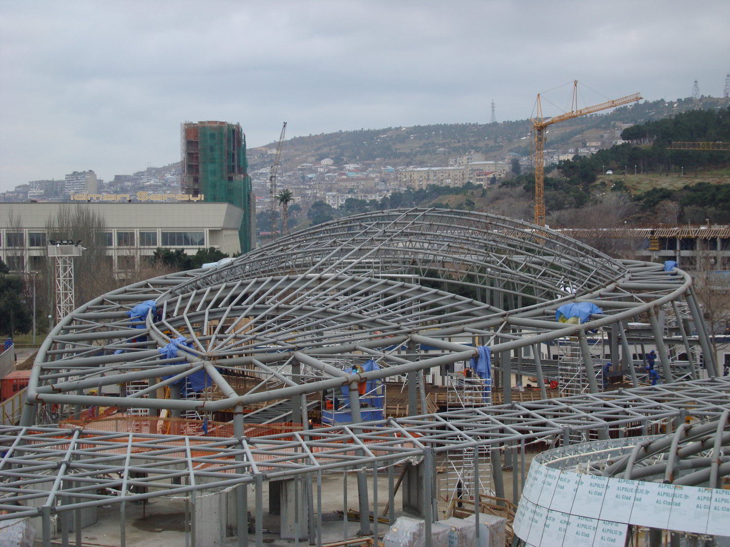 The 7.500 sq.m building reminds of the parts of tar, an ancient musical instrument of Azerbaijan. The 3-storey building includes 350-seat concert hall, club, classrooms, recording studio, 80-seat restaurant “Ud”.