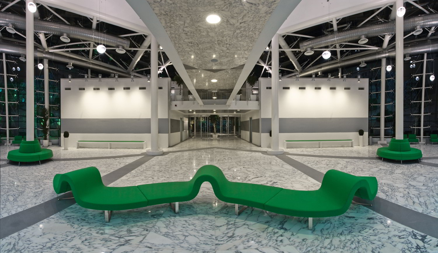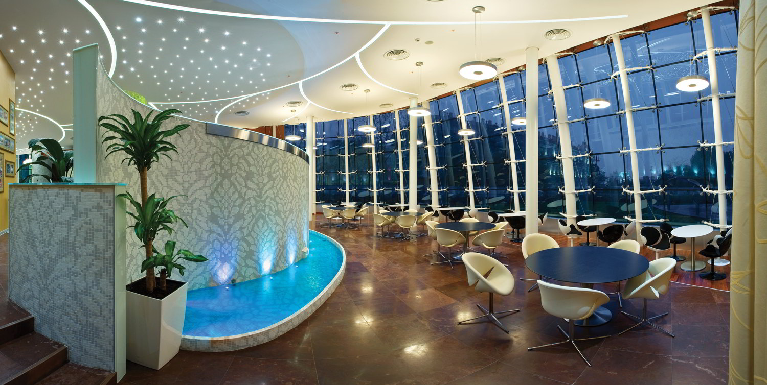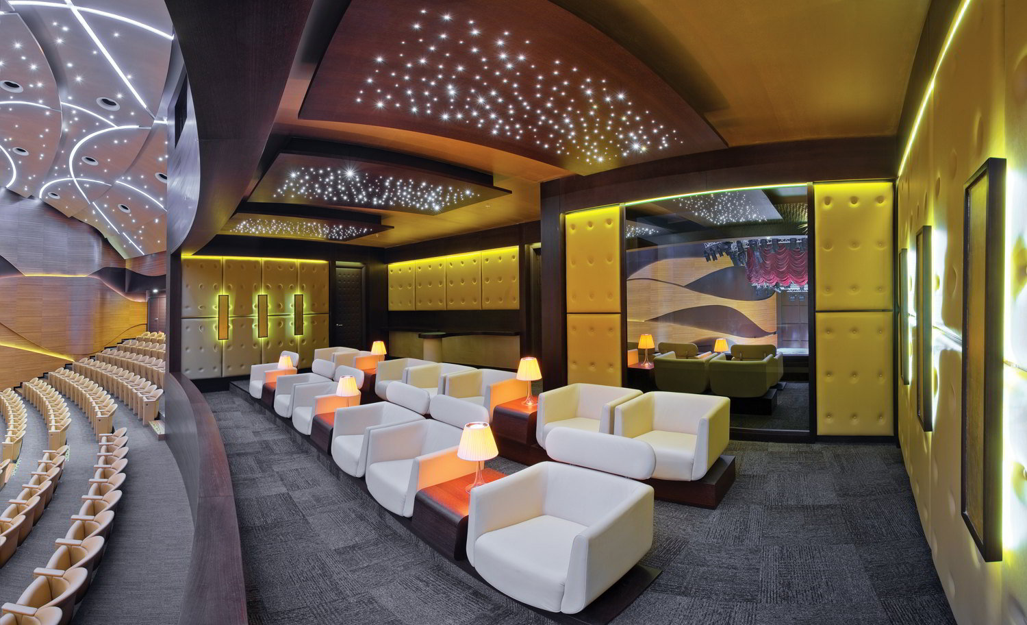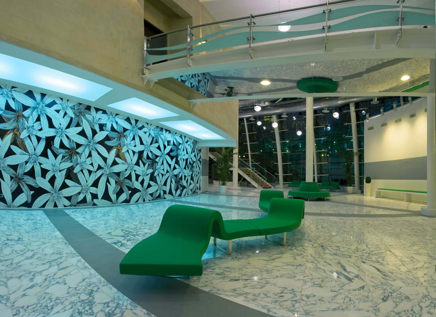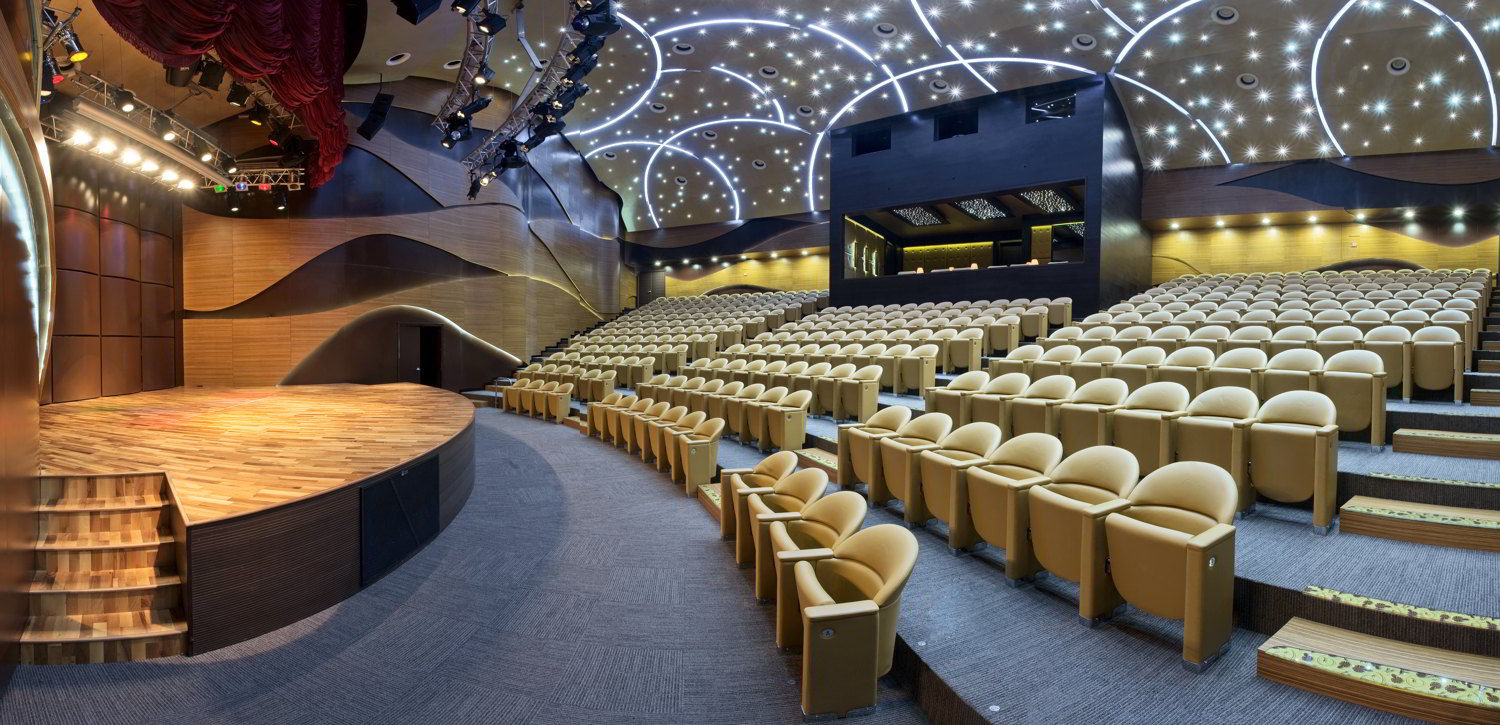 The 7.500 sq.m building reminds of the parts of tar, an ancient musical instrument of Azerbaijan. The 3-storey building includes 350-seat concert hall, club, classrooms, recording studio, 80-seat restaurant “Ud”.